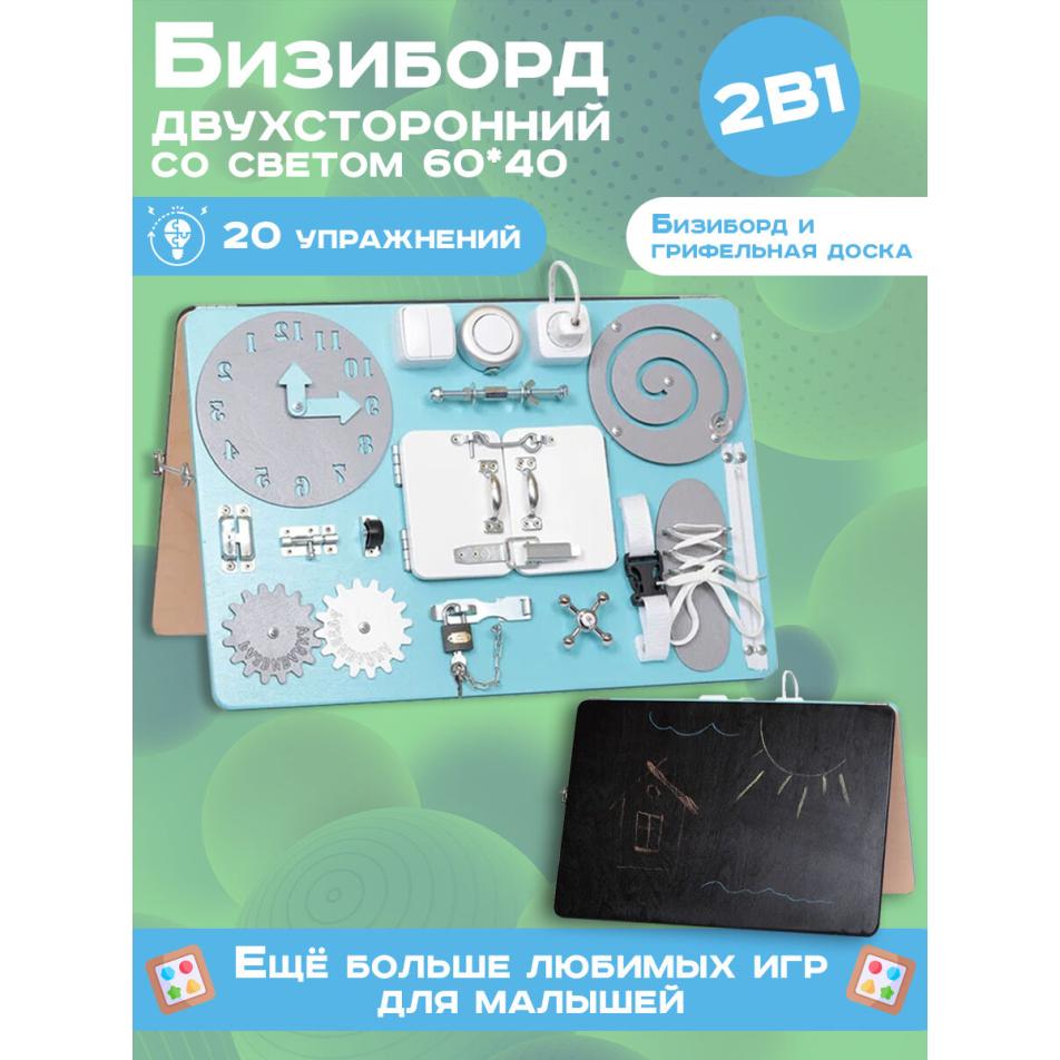 Бизиборд двухсторонний Стандарт 40х60 см со светом мятный